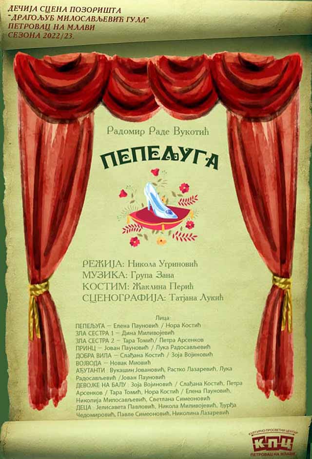 U okviru programa Festivala 1. aprila u 13 časova biće premijerno izvedena predstava “Pepeljuga”, Dečje scene petrovačkog pozorišta
