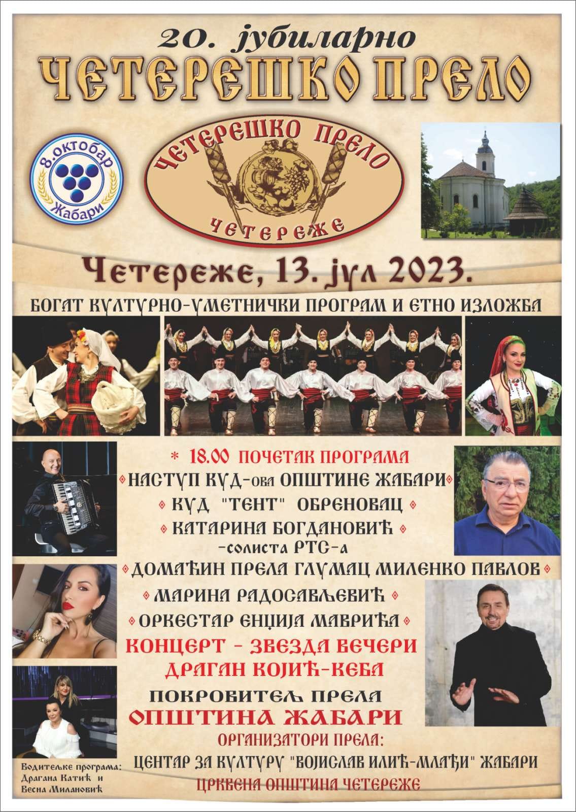 U naselju Četereže kod Žabara, 13. jula održaće se tradicionalno „Četereško prelo“, dvadeseto po redu, u organizaciji Centra za kulturu „Vojislav Ilić Mlađi“ i Crkvene opštine.