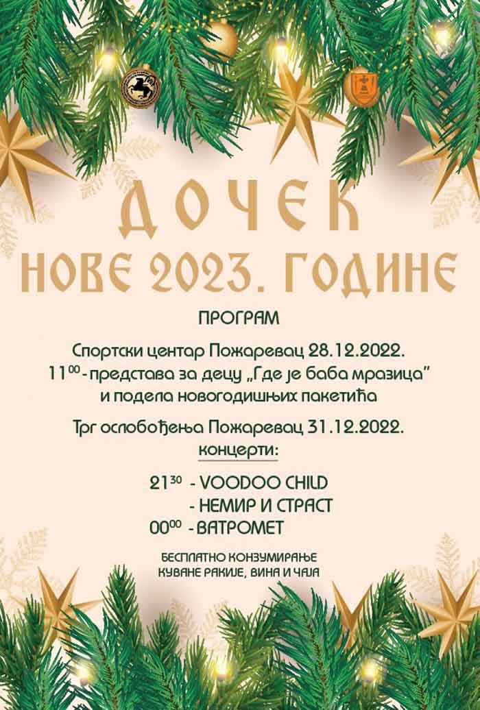 Doček Nove 2023. godine biće održan na Trgu oslobođenja u organizaciji Turističke organizacije grada Požarevca.