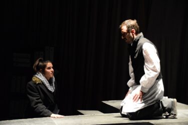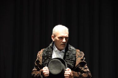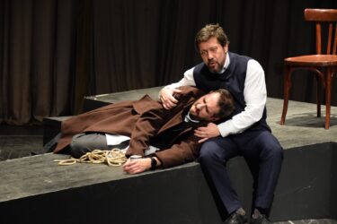 Posebne redove, pa i zaseban tekst, treba posvetiti Valentinu Oljači i nisam jedini koji to tvrdi. Nedavno je kolega Madžarev drugim rečima opisao svoje viđenje njegove pozorišne veštine. Ovde više nije reč o veštini, jer Valentino besprekorno vlada glumačkim sredstvima. To što smo videli na sceni je talenat (neko to zove, zašto da ne, i dar božji). Markantne, isposničke pojave, on bez ikakvog suvišenog poteza ili preglumljavanja šeta iz scene u scenu između teoretičara – intelektualca i hladnokrvnog ubice. Ta šetnja, naravno, nije po ružama, već po glumačkom trnju. U njegovom tumačenju Raskoljnikov, kao negativni lik, dobija bezrezervno poštovanje pa i podršku publike, što je u glumačkom svetu podvig. Setimo se Mrguda Radovanovića i njegovog Šicera, pa će sve biti jasnije. I reditelj je blagonaklon i odlučan sudija kada ga, u društvu Sonje, kao Adama i Eve, šalje uz krst prema prosvetljenju.