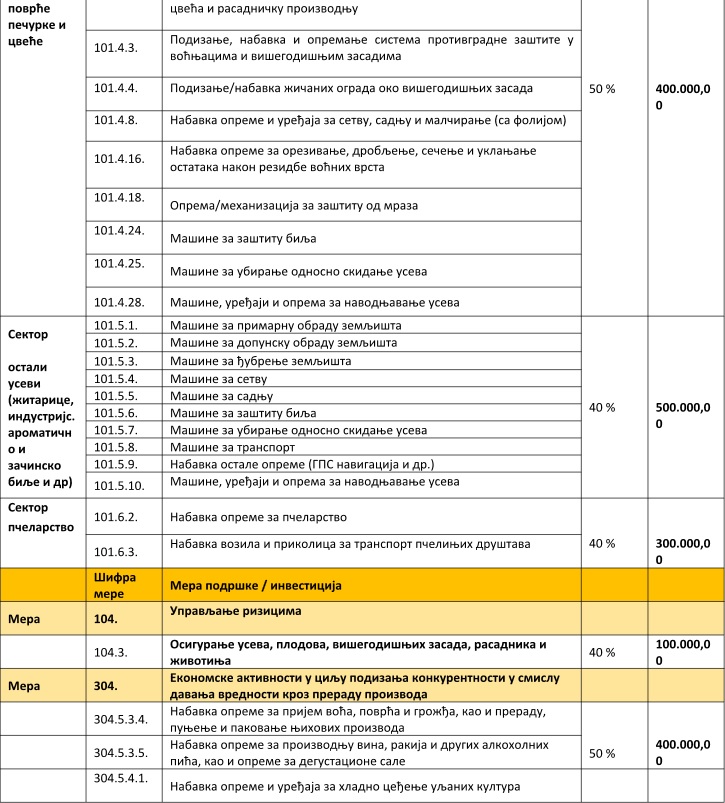 1.Sufinansiranje kamate za dinarske kratkoročne poljoprivredne kredite;