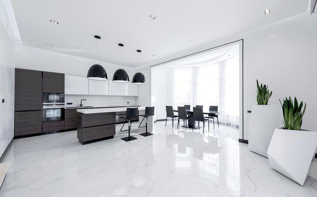 Najvažnije karakteristike podne obloge koja se postavlja u kuhinju je da je izdržljiva i da se jednostavno održava. Najčeće podne obloge koje se koriste u kuhinji su keramičke pločice i vinil.