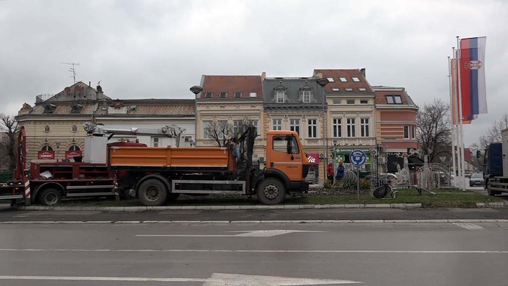 Novogodišnje ukrašavanje grada je počelo, a trenutno radnici postavljaju jelku i dekoraciju na kružnom toku.