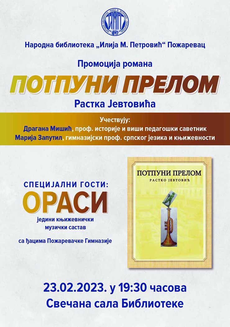 Narodna biblioteka „Ilija M. Petrović“ Požarevac, organizije promociju romana „Potpuni prelom“, Rastka Jevtovića.